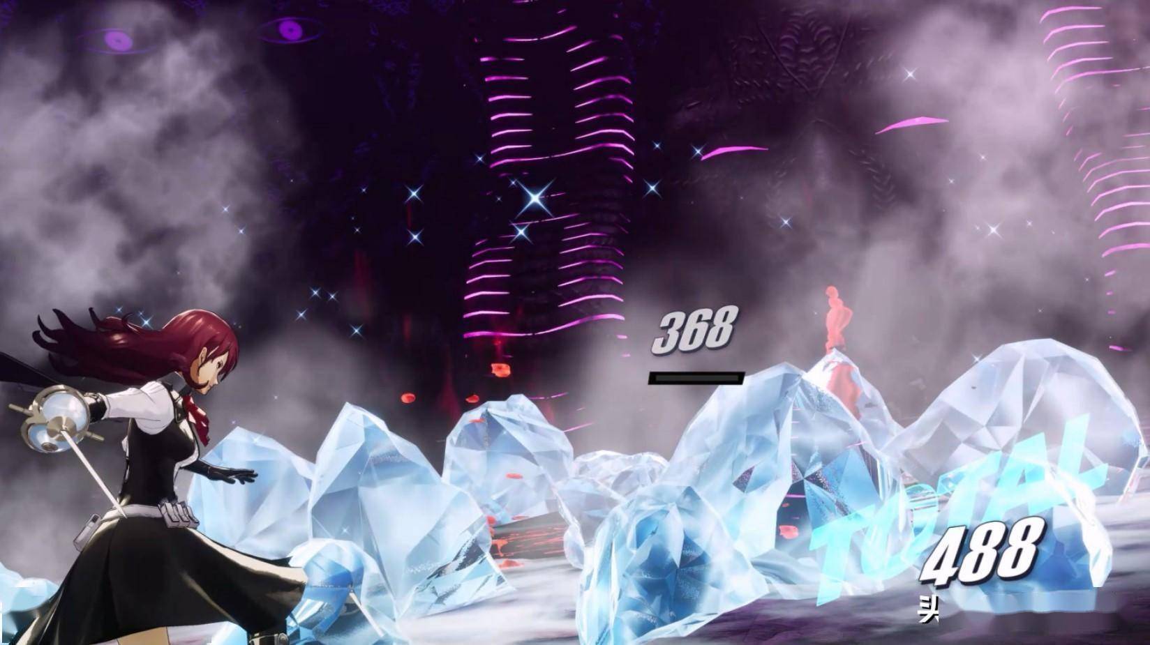 《P3R》的战斗环节也因此而获益良多。现在当你用Persona技能成功命中敌人弱点时,也会出现类似于《P5》的横条特写镜头,而令我最为印象深刻的是总攻击阶段的动画——它不仅得到了完全重做,且如果你用它击败了所有敌人时,还会出现类似于《P5》的静态定格特写画面。
