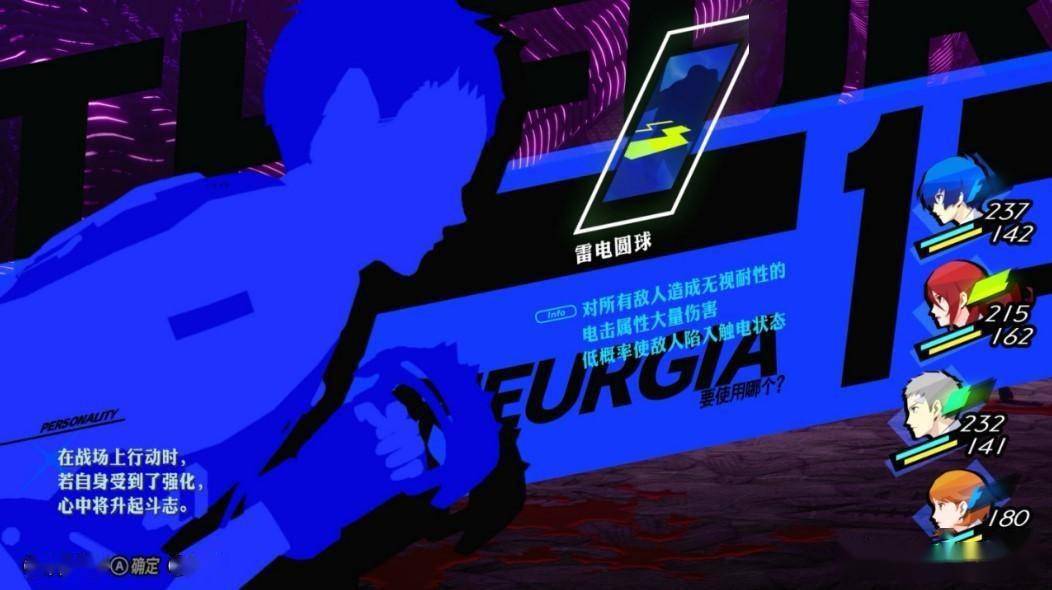 这次《P3R》还新增了一个从未在系列中登场过的新系统“神通技”,通俗点讲,就是一个通过积攒计量槽释放的大招机制。每位同伴的大招效果都和自身属性相关,像桐条美鹤是针对单体的冰冻攻击,而真田明彦则是攻击全体的雷电。