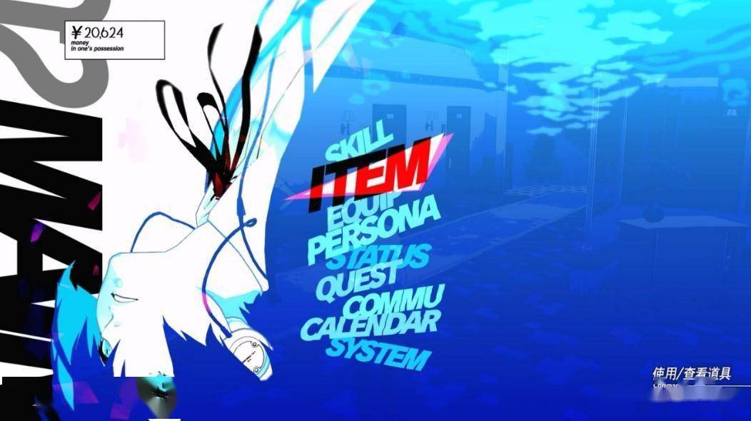 此外,《P3R》中的UI也都变得更加独特且张扬,不同于《P5》那种红黑相间的波普风格,以蓝为主色调的《P3R》充满着清新澄净、又带着一丝忧郁的海洋气息,辅之以主角各种形态的侧身特写,让玩家每每打开使用最频繁的菜单时都能感受到本作独特的气质。