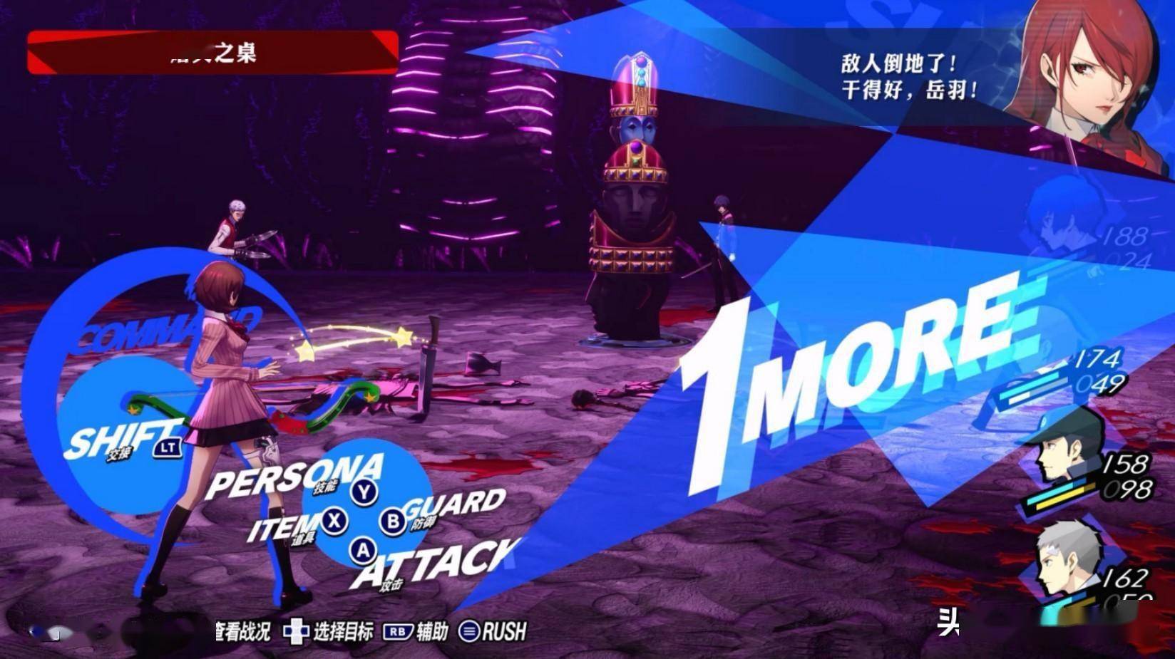 整体来看,《P3R》的战斗环节明显向《P5》靠拢了许多,最具代表性的,是引入了类似于《P5》中“换手”的“交接”系统。