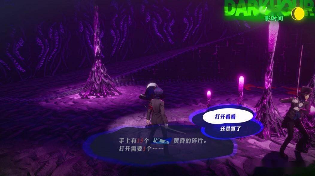 如今,塔尔塔洛斯的整体质感变得更像《P4G》了,它依然是类似“印象空间”的随机生成迷宫,不过在场景中加入了一些可破坏物品(砍碎它们的话有几率得到换金道具)以及上锁的宝箱。这些宝箱需要你用新道具“黄昏的碎片”来打开,你可以在平时场景中闲逛找发光的亮点来捡到,而随着游戏的推进,伊丽莎白也会给你赠送一些。