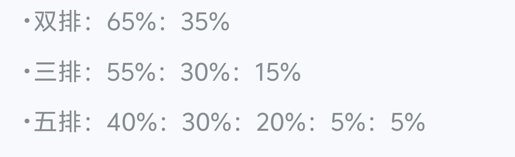 而三排的情况下,高分段占55%,中间占30%,低分段占15%