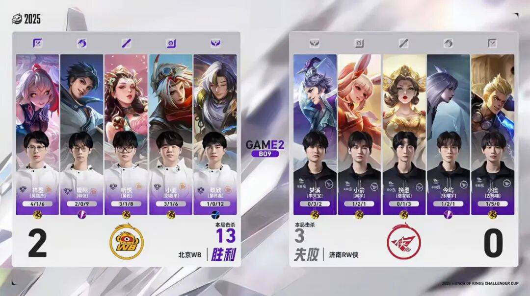 第五局是WB的赛点局,同样获胜,以5:0的战绩零封RW侠,赢下了2025年王者荣耀挑战者杯的冠军。