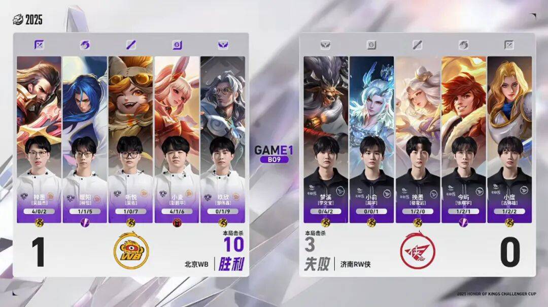 今天是王者荣耀2025年度挑战者杯的总决赛,北京WB对战济南RW侠。这一次采用的是BO9,也就是九局五胜制。