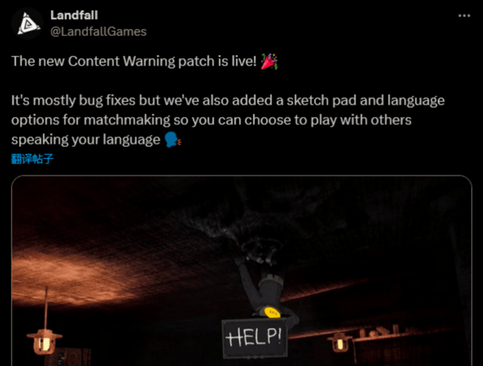开发商Landfall近期在社交媒体上发布了《内容警告/前方高能(Content Warning)》的最新补丁,并详细介绍了未来的更新计划。新补丁已上线,主要包括一系列BUG修复和游戏体验改进。Landfall工作室表示,这将是“一段时间内的最后一个补丁”。