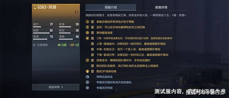 全新首发的G3A3-凤雏,满腹经纶展骥才,助备取蜀献三策,配置有“具备更快的瞄准速度”、“三策”、“铁索连舟”和“附近队友越多,自己和队友主武器受击上扬越低”等属性,先声夺人,非常强大。
