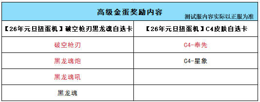 高级金蛋中涵盖全新首发的破空枪刃和黑龙魂系列武器及全新首发的C4-奉先,让我们的选择更加多元。