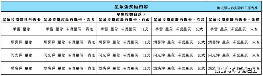 星象蛋则是可以获得星象系列的道具武器,值得注意的是,本次活动相较于去年,将随机奖励机制更换为自选卡机制,小伙伴们可以自由选择所缺的道具,为集齐该系列道具提供了绝佳的机会,表格内容如下: