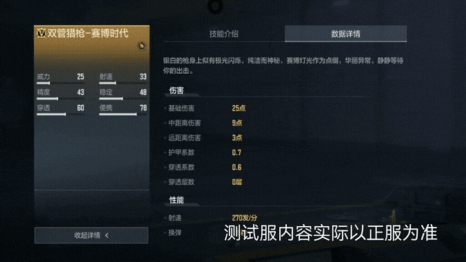 全新首发的双管猎枪-赛博时代的中、远距离伤害有加强,点射稳定性提升且受击上抬高度为0,在同类型武器中遥遥领先。
