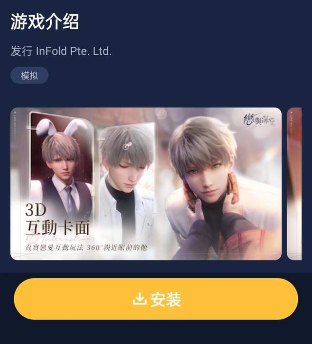 《恋与深空》是叠纸科技基于“恋与”系列最新开发的一款超现实3D沉浸式恋爱手游,在这款游戏中,玩家可以通过捏脸、捏声线创建一个专属于自己的独特角色,并以第一人称的视角与游戏内的男角色进行剧情互动,从拍照到出游,多种乐趣玩法等待着玩家的解锁,通过游玩,玩家可以很好的感受到恋爱的甜蜜。