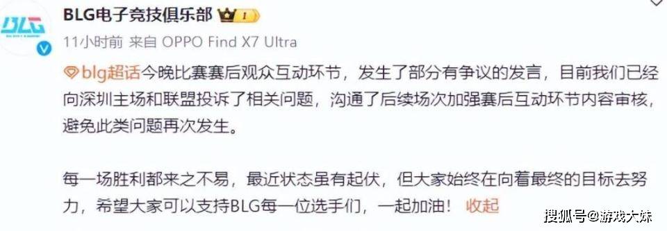 这件事发生后,粉丝炸锅了,最终BLG战队官方也迫于压力,发文表示已经向NIP主场,LPL官方投诉了相关问题,有人说是粉丝太过分,也有人说是他们开不起玩笑,对此你们是什么看法呢?