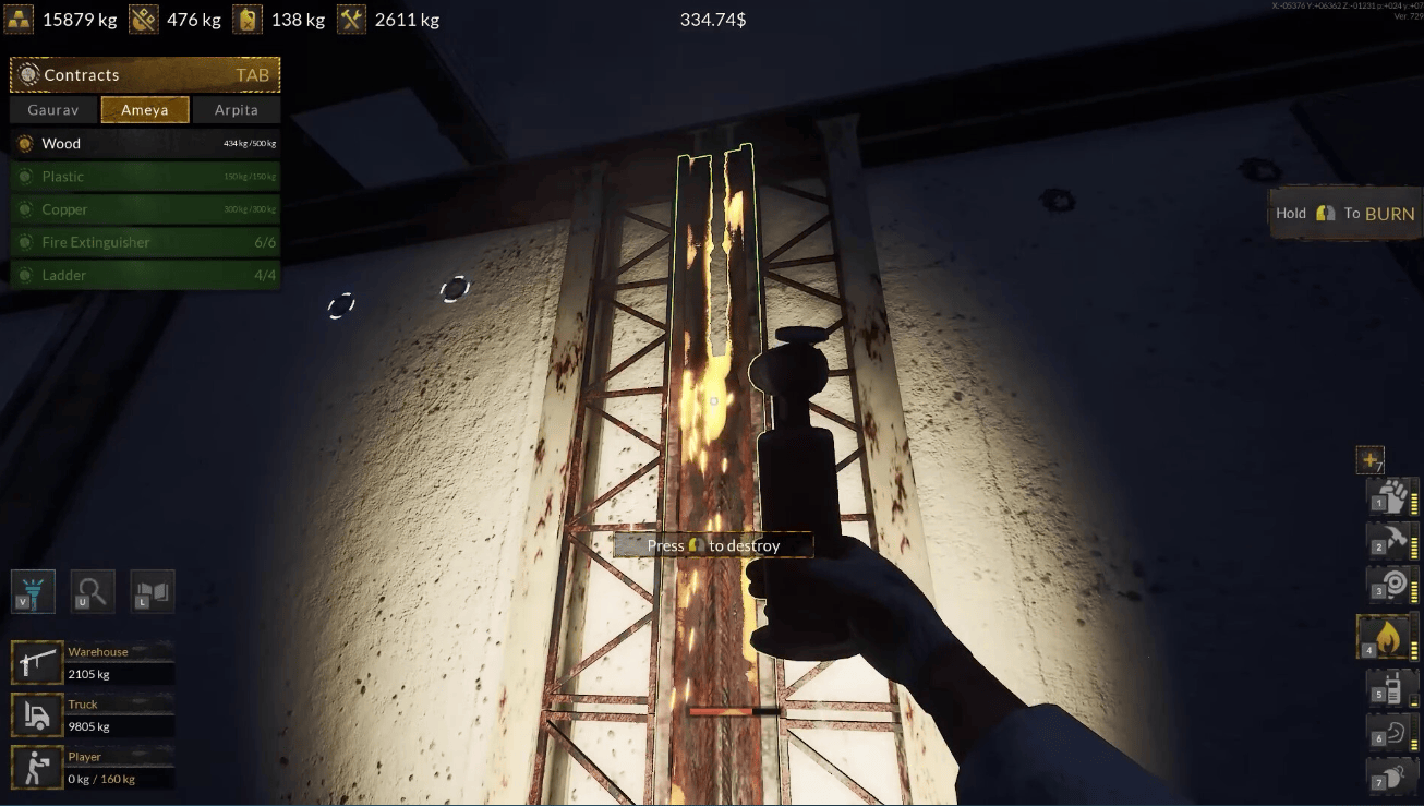 数值有点没看懂,玩家承重和卡车承重单位都是KG,但同样的废料从玩家手里装上卡车后,重量猛增了3倍,例如:玩家手里是50KG,放到卡车上后就变成了150KG。