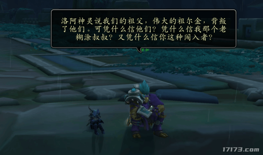 可让小弟无法理解的是,暴雪编剧的笔锋忽然一转,就让祖尔金的孙女,现任阿曼尼巨魔首领祖尔加拉给了莉亚德琳一个机会,帮她找回洛阿神灵,这样巨魔就能重新使用神灵之力来打退虚空的入侵。