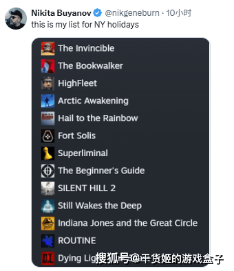 硬核向军事撤离射击游戏《逃离塔科夫》的制作人尼基塔,近期公布了自己的新年假期游戏表。下面罗列一下相关游戏作品的简介,看看这位拥有编程、平面设计、音乐、企业管理等多项开发技能的个性游戏制作人玩游戏的品味。