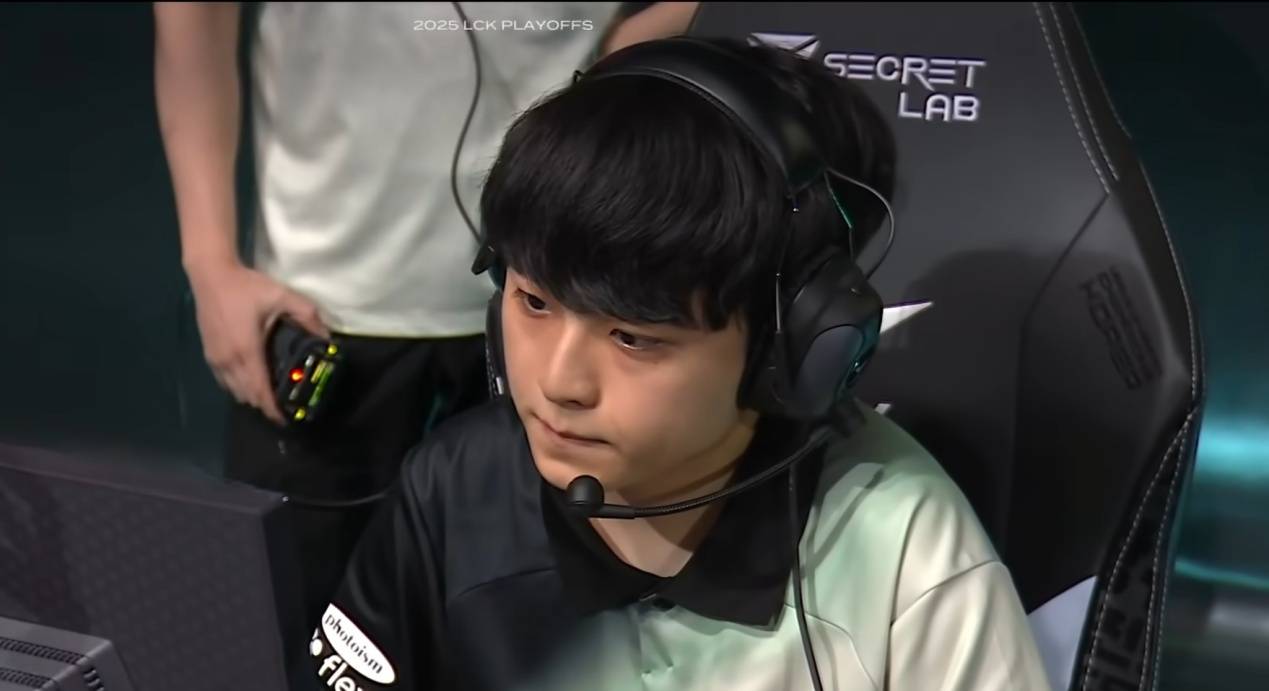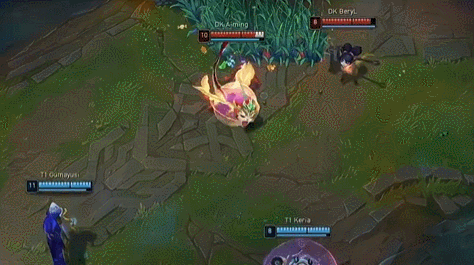 开局后T1尝试入侵野区被防住后进入正常对位,下路掌握一定线权,但上路对拼Siwoo两次打残鳄鱼,第二次Lucid一波精彩的闪现Q命中配合拿下Doran 的一血。