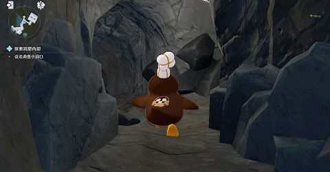 我原本认为这可能是需要推进别的任务来解锁的收集点,就打算走了。但转念一想,既然「甜蜜投掷」的效果是扔一个蛋糕到NPC头上,那蛋糕是不是可以挡住他的视线?结果一试,还真成功了。