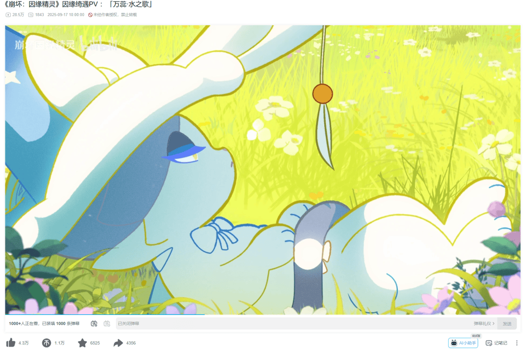 比如说米哈游长久以来围绕「售卖角色」的一系列商法,在《崩坏:因缘精灵》这就失效了。虽然游戏里还是有角色,但显然已经不是重点。你看游戏官号原本的角色PV位置,现在都是在展示精灵。