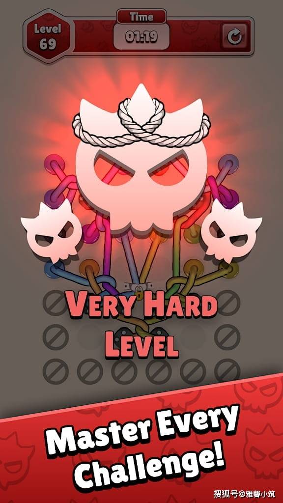 《Twisted Tangle》以曾经盛极一时的3D绳结玩法为核心,通过了平板化的关卡设计,从而衍化出数之不尽游戏关卡。也因此令游戏可以每周都更新大量关卡。更有BOSS模式关卡等你挑战。游戏的美术采用了强烈的对比色组合,背景采用了暖色系的浅色呈现,需要破解的绳结为了突出视觉效果,选择了诸多光鲜亮丽的色彩组合,在饱和度与亮度方面更是直接拉满,让你能从彼此纠缠的绳结中轻松找出两端。
