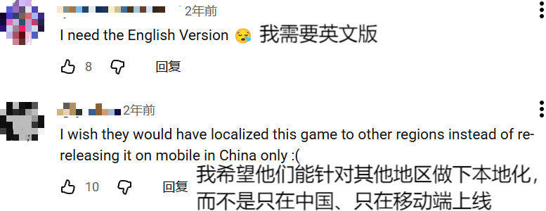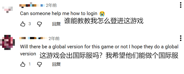 有人将《逆水寒》手游国服的预告片、实机游玩流程搬到了YouTube,不少网友则在评论区表示“谁能教教我怎么登进这游戏”“有没有国际服”“需要英文版”……