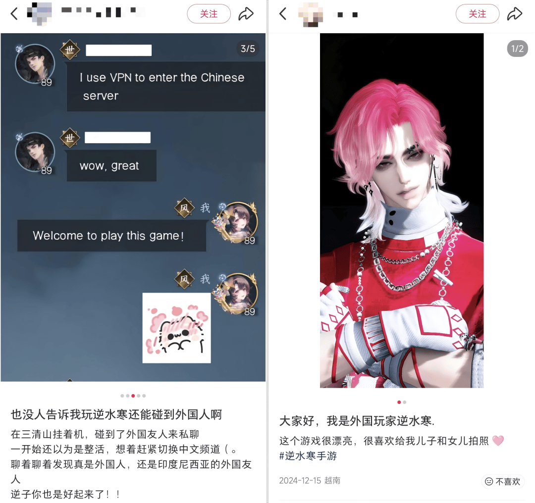 也有少数等不及了的老外,直接翻墙进国区玩《逆水寒》手游。