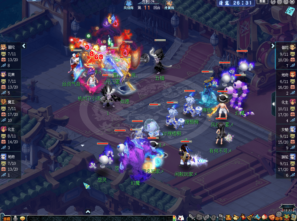 比赛前期,钓鱼岛采用了力压输出点的打法,西栅老街则是选用了清宠策略。就比赛情况来看,由于钓鱼岛拿到物理一速,不仅导致西栅老街的物理输出很难出手,还帮助女魃墓构建了“双幻魔”阵型。比赛第13回合,钓鱼岛凭借力普陀的进攻成功压倒西栅老街神木林后,就彻底封锁了对手清幻魔能力,逐渐形成“以多打少”的优势。