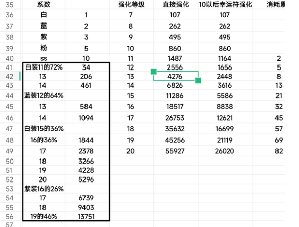 结论:用白装强化7-12节省712碳,防具534碳。6-16比10以后用幸运符多花4913碳1215万金币,省32个符按2万/符即64万泰拉,按金价285/泰拉,碳价120/泰拉花费为59万泰拉。