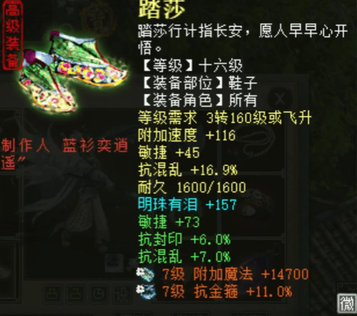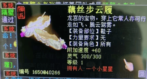 玩家通过修罗得到一双藕丝步云履