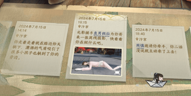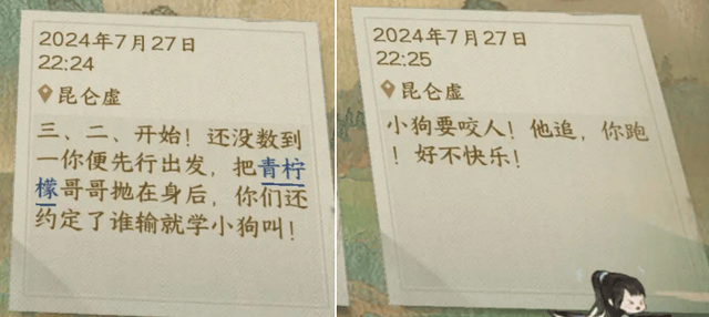 比如这位小姐姐晒出自己的离线记录,在昆仑虚遇到了一位小哥哥,两个人坐在一起就开始谈天说地。