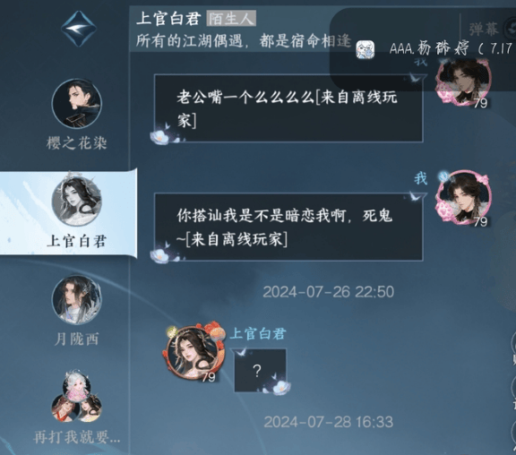看到其他人晒出的游戏截图后,这玩家才发现,原来是自己下线后,角色在AI的控制下自己去撩妹了,不仅到处给人发“老公嘴一个”,甚至还要去牵妹妹的手……实在是撩妹届的高手。