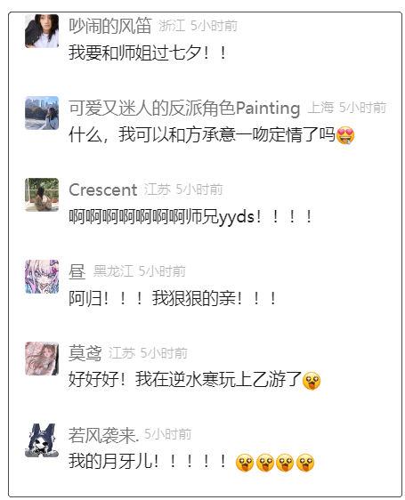 以前,和无情、方承意、燕无归等等NPC培养好感度,可以一起同游、约会,甚至还能和对方一起穿情侣装,如今,中国最浪漫的七夕就要到了,咱们的关系自然要更进一步。