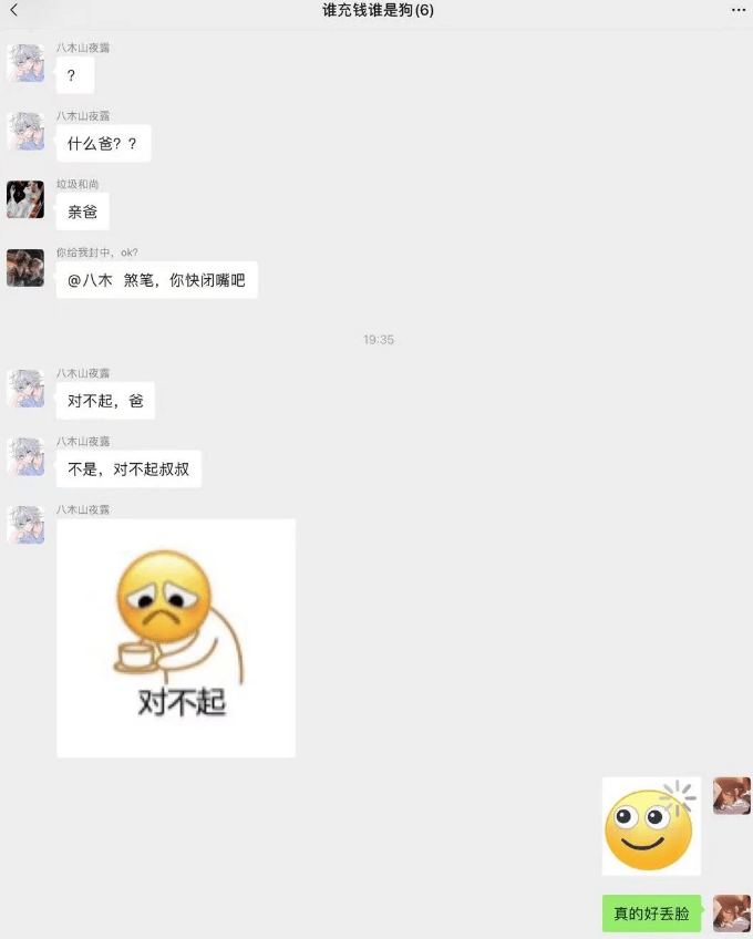 谁知道这时候一位队友抽了,直接在群里喊了一句“谢谢儿子”,在大家的解释中意外暴露了这位50岁大叔的身份,吓得队友连连道歉: