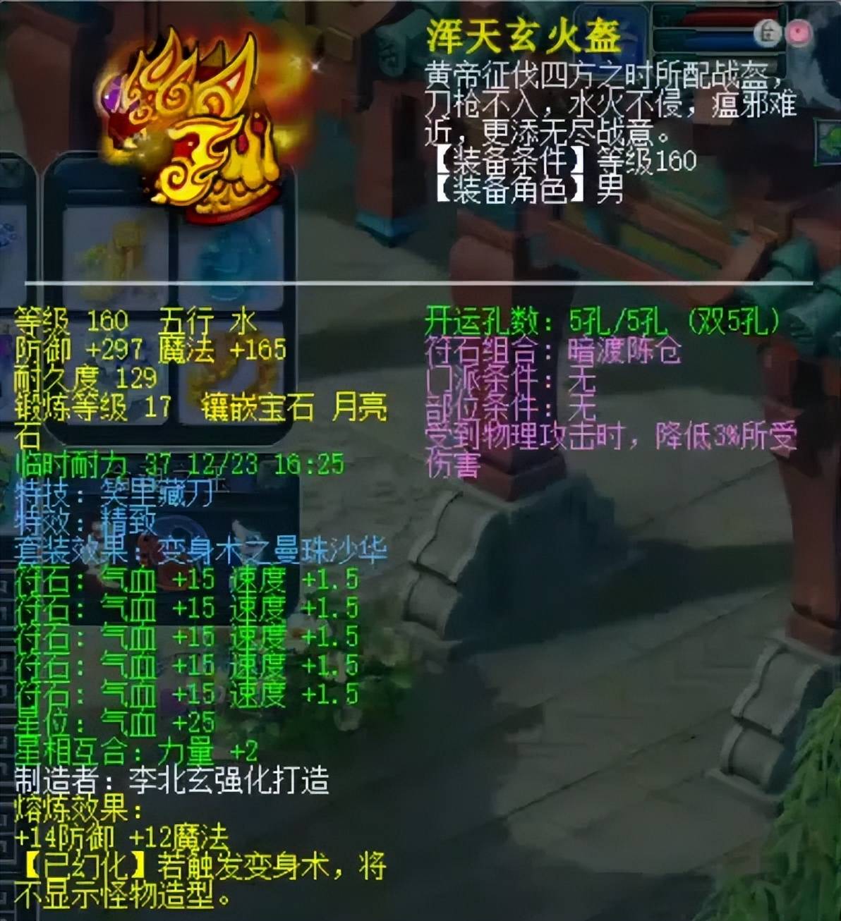 160级精致笑里头盔,镶嵌17锻月亮石+熔炼总防311。笑里藏刀特技能够减少目标70点愤怒值,其使用过程会是一场与对手的心理博弈。