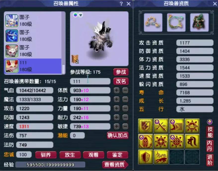 10技能观照攻谛听,罕见的五轮配置。运气不好的话,触发善报会给对手加满血。