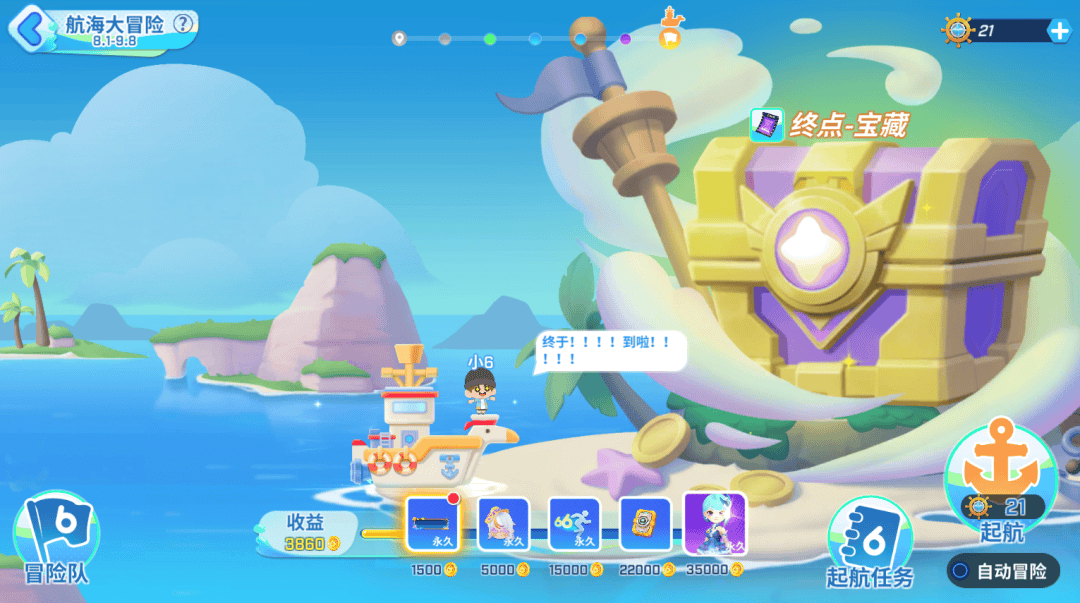 3.终点额外收益:冒险队成员每次抵达终点-宝藏岛的时候