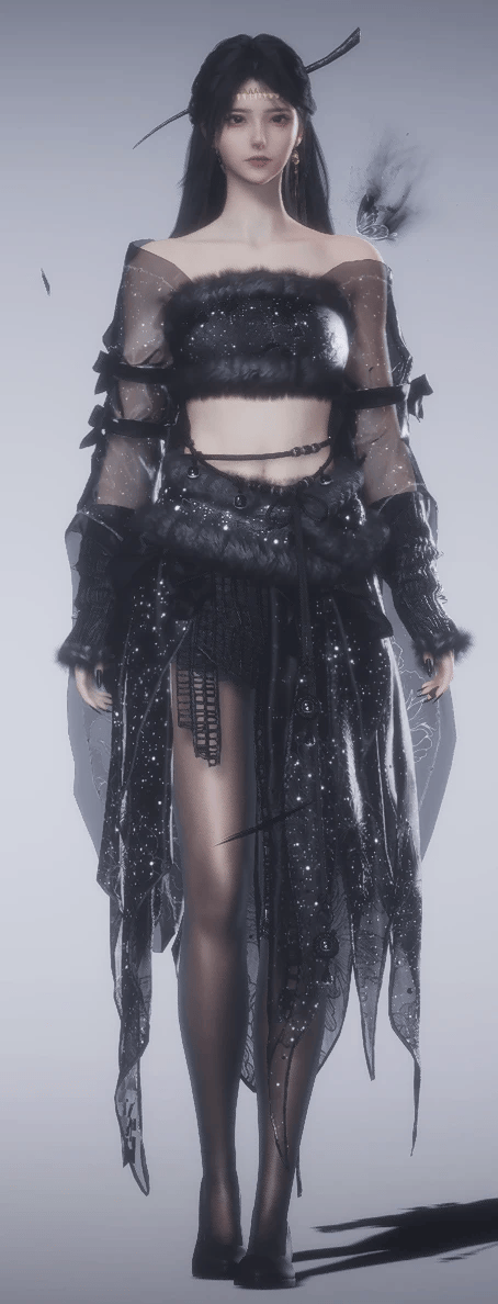 衣服透明,露背绑带,裙短不盖膝,背后一个蝴蝶结,角色在跑动时甚至会出现无裤穿模的问题……