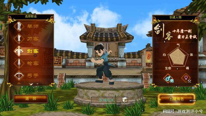 . 职业选择:游戏中有刀客、剑客、枪客、弓手、医师、琴师六大职业可供选择。刀客是近战职业,可迅速解锁群攻技能,练级效率高,在PVP对战中有一定优势;剑客持续输出能力强,战无不胜,但刷怪效率不高;枪客高爆发输出,上手难度高,刷怪效率高;弓手攻击距离远,能召唤残影助阵,高命中和高输出;医师是远程输出职业,擅长辅助和治疗,有出色的控制能力;琴师能将音乐化为武技,可释放致命一击并施加负面效果。