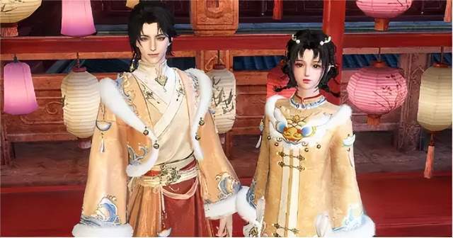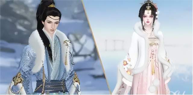 第三套是【落蕊飞霜】【澄空冰轮】也是风格鲜明的情侣冬袄,雪白的绒毛很暖和,简约大方的设计很端庄养眼。三套都是免费的,大家一定别错过了。