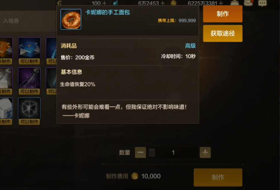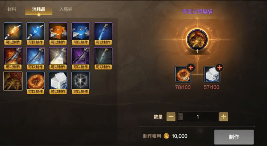 你没听错,这些看似普通的消耗品,其实能成为你获得丰厚奖励的关键。许多玩家可能会直接用这手工面包恢复20%的血量,然而却没意识到,这种做法不仅浪费了宝贵的资源,还可能错过了更大的机会——100个夺宝之钥的机会。毕竟,与其用这面包和牛奶恢复血量,还不如用它们来制作夺宝之钥福袋。