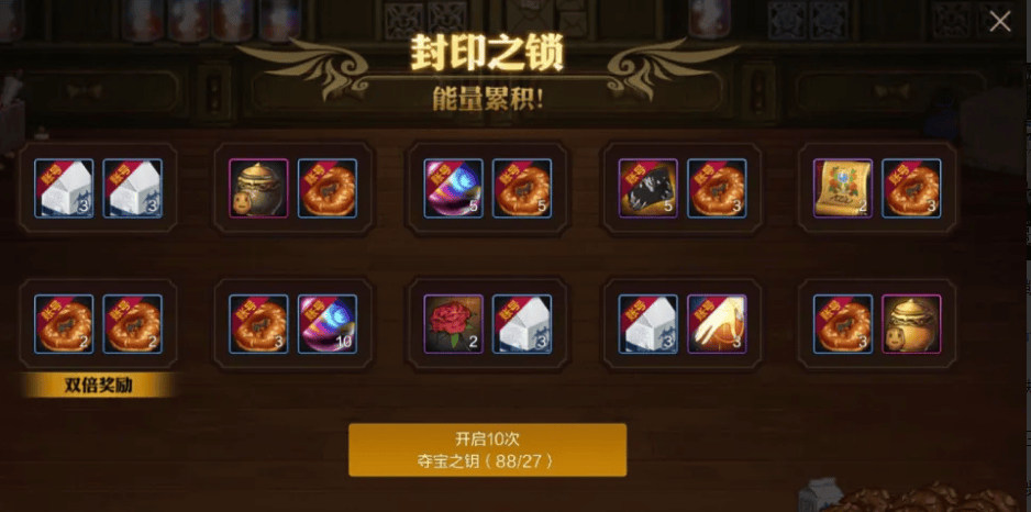 虽然保底是1个夺宝之钥,但这100个夺宝之钥的上限足以让你兴奋不已。如果幸运地开到了100个夺宝之钥,几乎可以保证你在接下来的封印之锁中获得一大波丰厚奖励,这种好运真的是让人羡慕得无话可说。