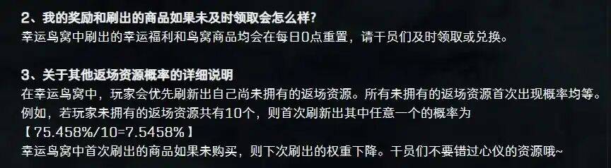 最后再提醒一句,与其迷信“选哪个鸟窝”的玄学,不如吃透官方机制。记住未拥有优先、心仪道具果断拿这两个原则,再配合对应的奖励处理方案,就算不是欧皇,也能把幸运鸟窝的收益拉到最高!