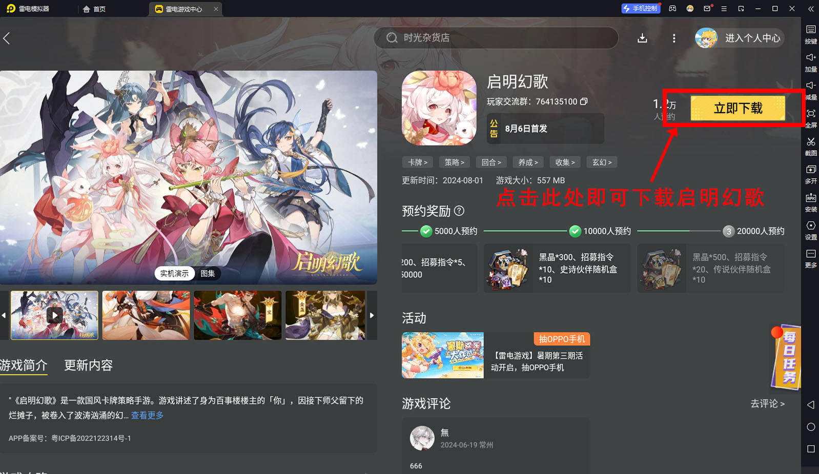 打开模拟器后直接点击搜索框搜索启明幻歌即可下载。
