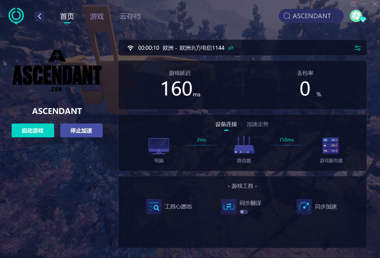步骤二、点击优化即可获得稳定网络连接,流畅游玩ASCENDANT公测