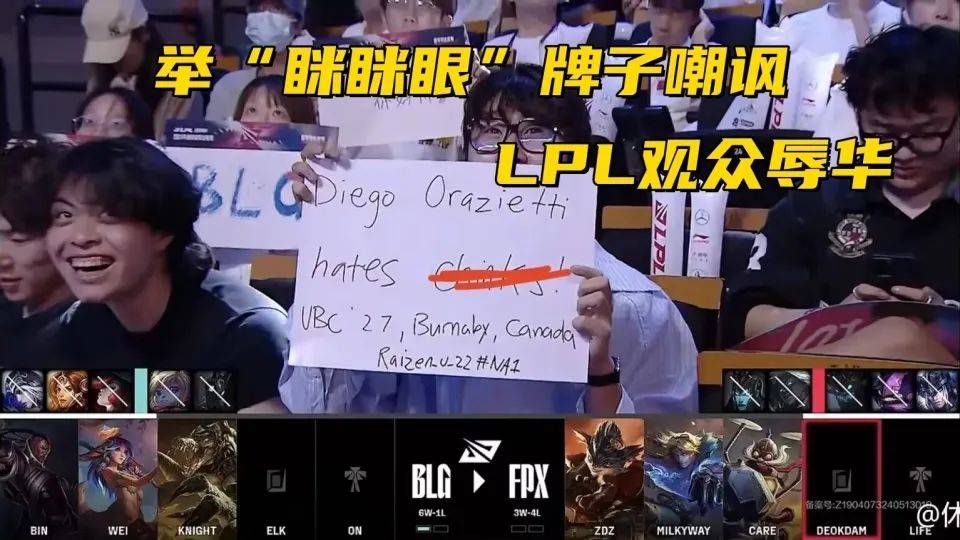 然而,在胜利的喜悦之外,一场风波也悄然掀起。FPX与BLG的比赛中,BP环节发生了一起令人愤慨的事件:一名FPX粉丝利用导播切换镜头的瞬间,故意展示含有种族歧视和辱华词汇的粉丝牌,这一行为迅速在网络上引发轩然大波。尽管该粉丝的狡猾手法一度让导播措手不及,但LPL官方迅速介入,展现了坚决的立场。