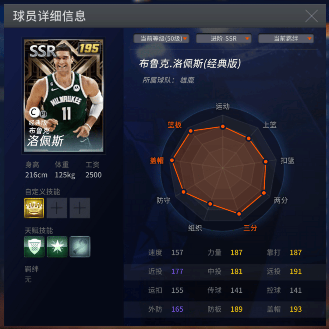| 昌西.比卢普斯(经典版) | 稳健投手Lv3 持球抢断专家Lv3 远程炮台Lv1 |