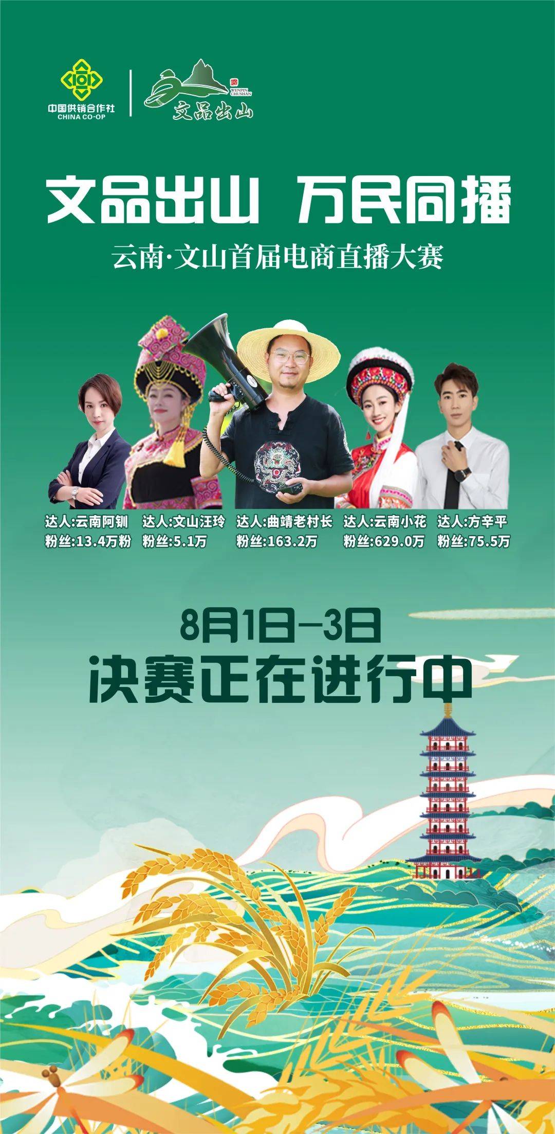注意:8月3日,大赛闭幕式将在《非常文山》视频号全程直播。如有不能到场的观众,可以线上观看大赛闭幕式。