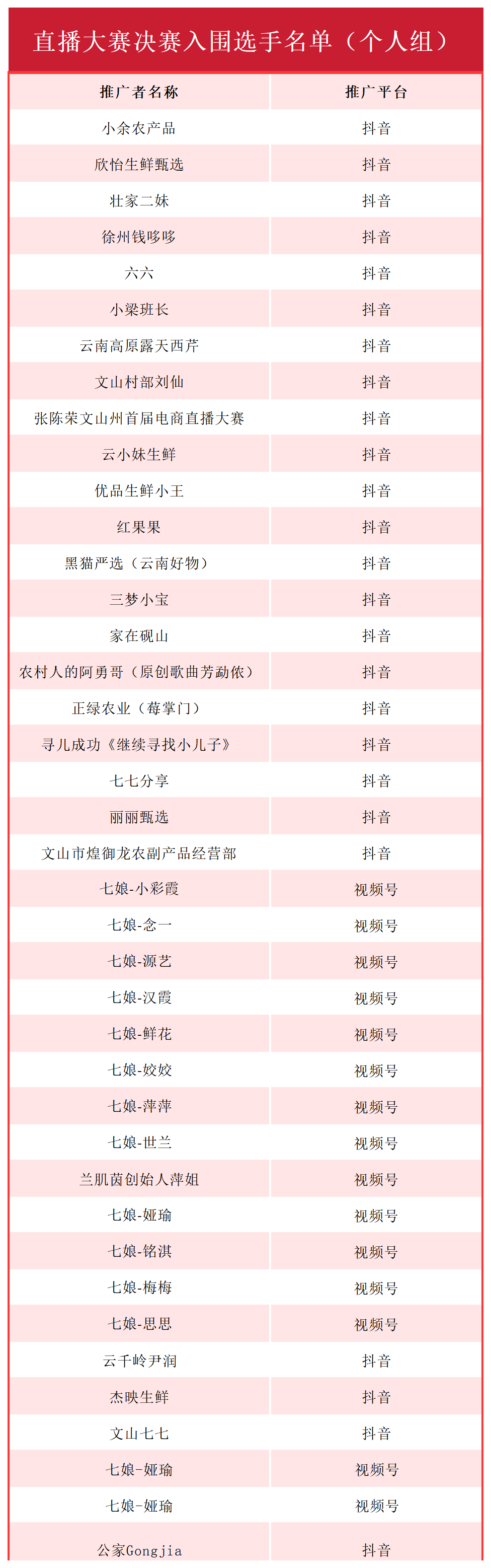 大赛决赛名单