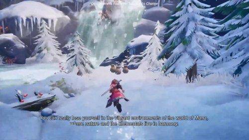 视频中主要展示了《圣剑传说:Visions Of Mana》庞大的3D世界和自由探索、战斗。游戏还引入了一种新生物:Pikul,一只类似约克夏犬和穿山甲的杂交大狗生物,玩家可以骑着它环游世界,并可以用来冲向敌人。