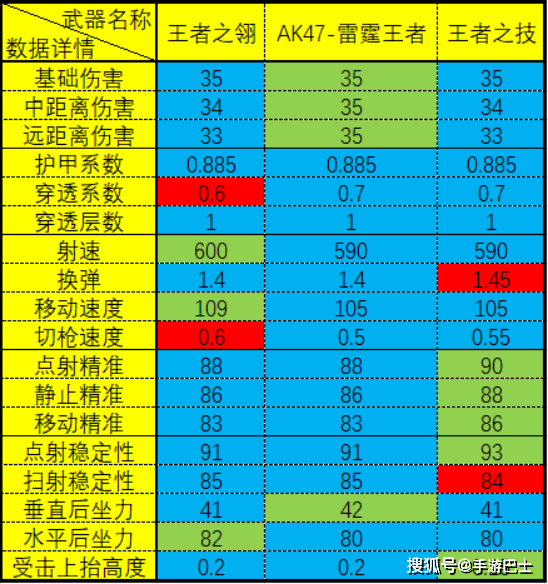 这三款王者武器的侧重点不同,他们究竟在哪一方面更具有优势呢?为了更好对比,这里已经将三把武器的数据展示如下。
