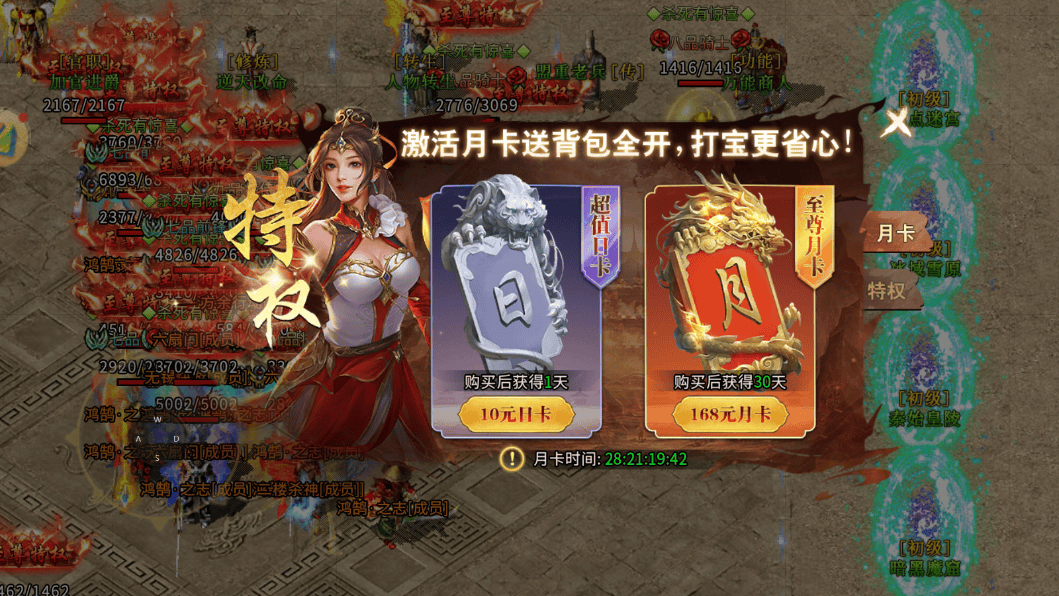 特色玩法:点卡付费、经典职业设定、自由转职系统、打金搬砖友好、组队协作、攻沙夺城