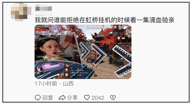 更搞笑的是观众成分复杂,除了路过的玩家,还有高衙内、小寒等NPC混迹其中,为了看剧入了迷;不少玩家表示路过虹桥,就忘记了自己本来要去做的任务,这太耽误事儿了。